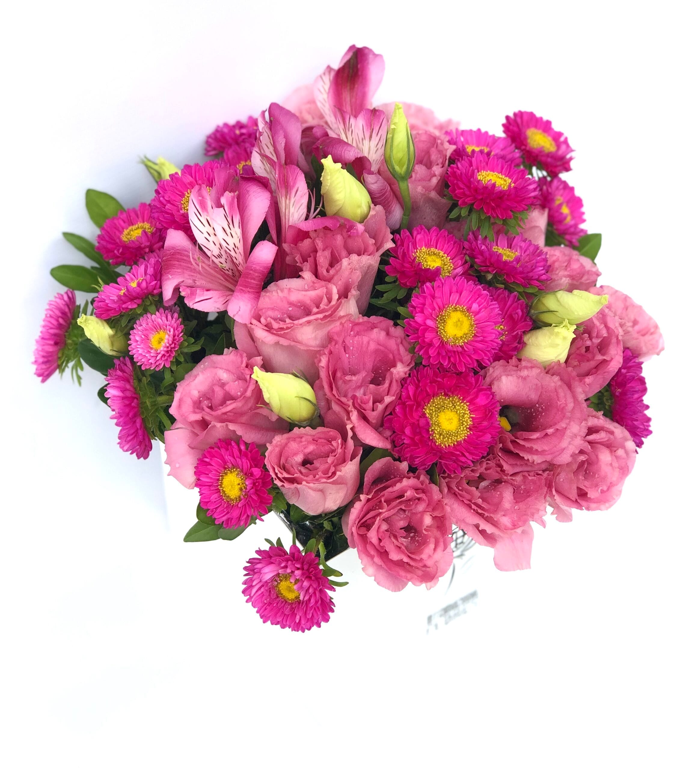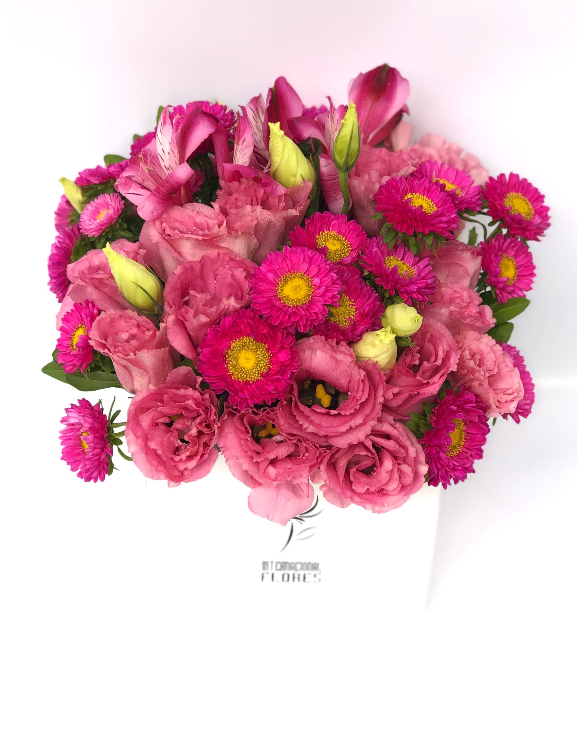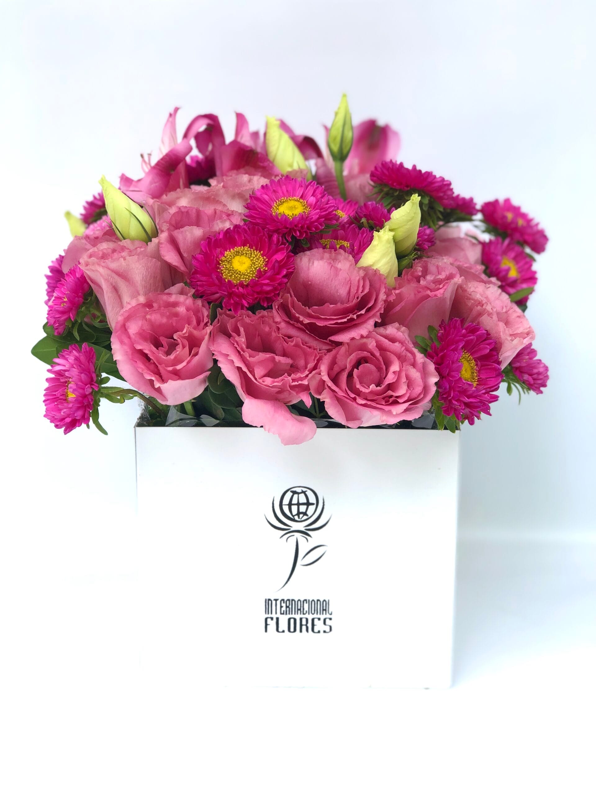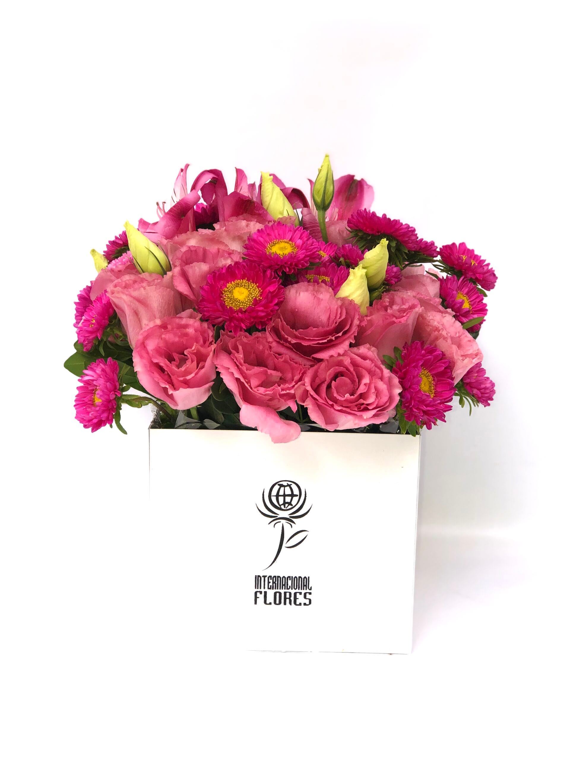 Delicado arranjo na BOX LUXO um cachepô medindo 13 cm de altura por 15 cm de largura com flores nobres COR DE ROSA. (As flores podem ir de diversas espécies, mas todas na cor rosa, para continuar com a beleza do arranjo)