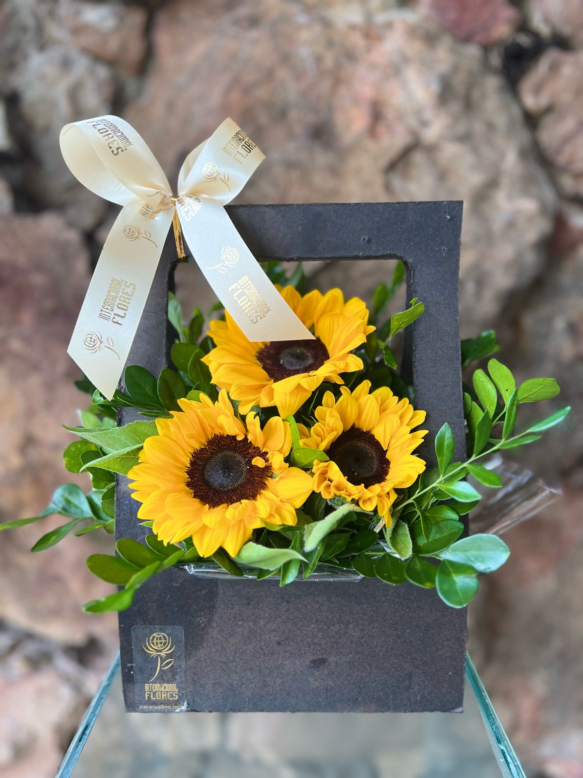 ARRANJO CESTINHA 3 MINI GIRASSOL