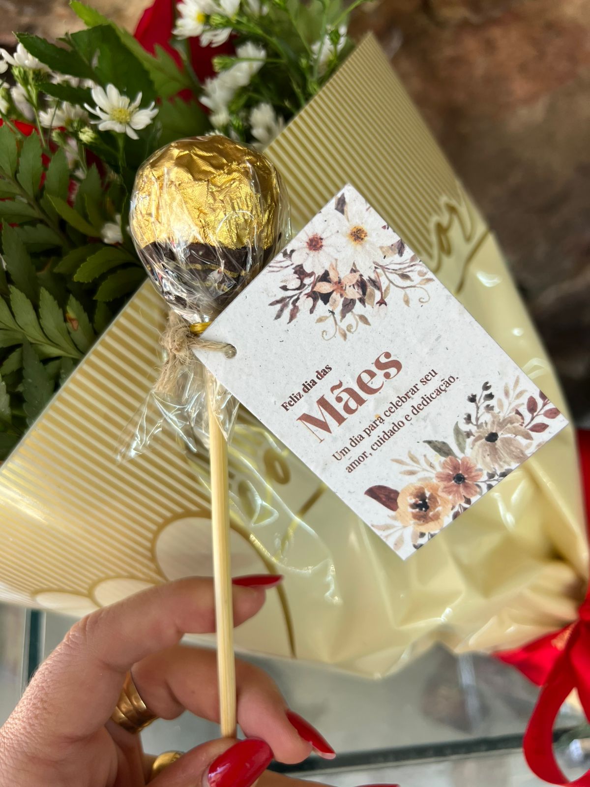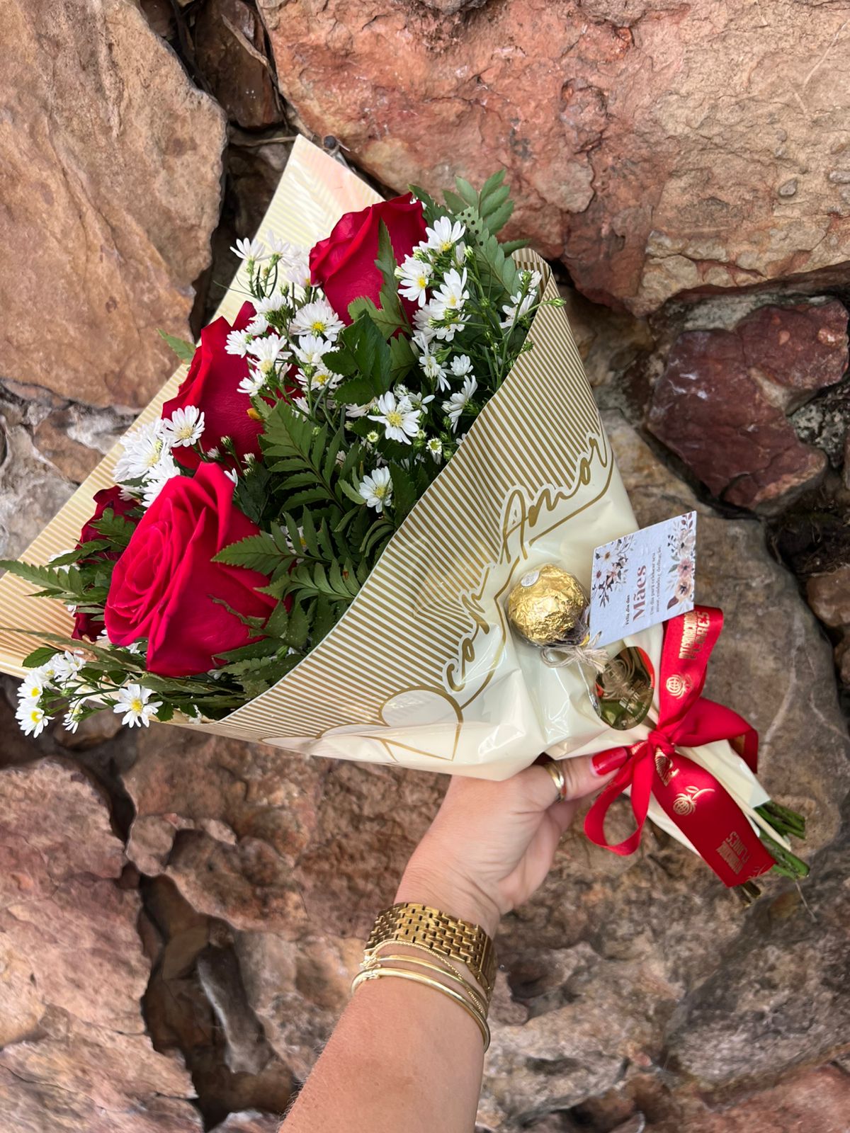 Buquê 5 rosas vermelhas “Com Amor” Dia Das Mães