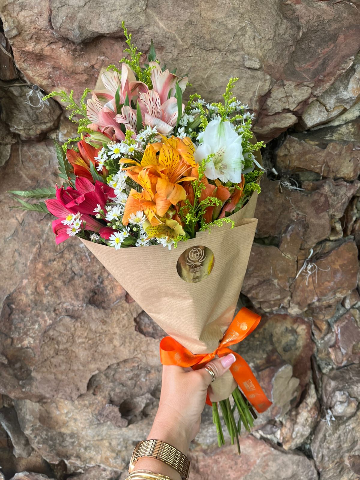 Buquê Astromélias Coloridas no Kraft