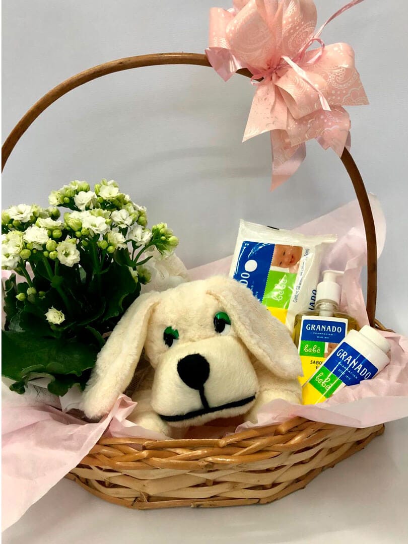 A cesta vai embalado em saco transparente com laço de fita especial.