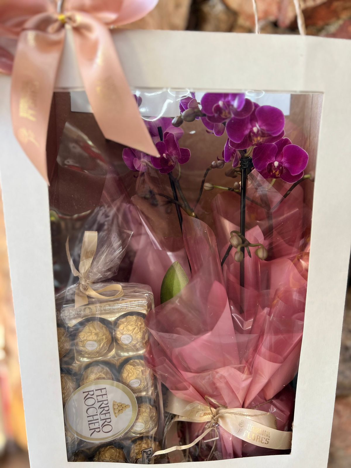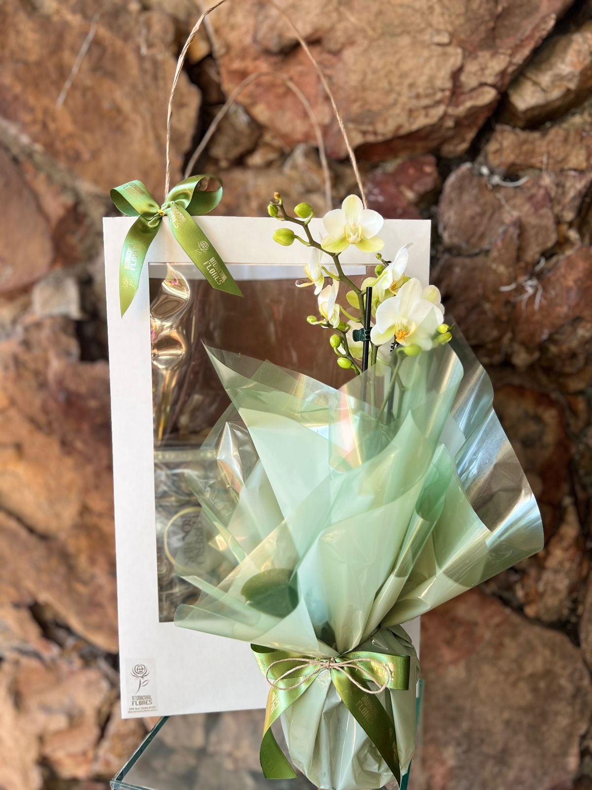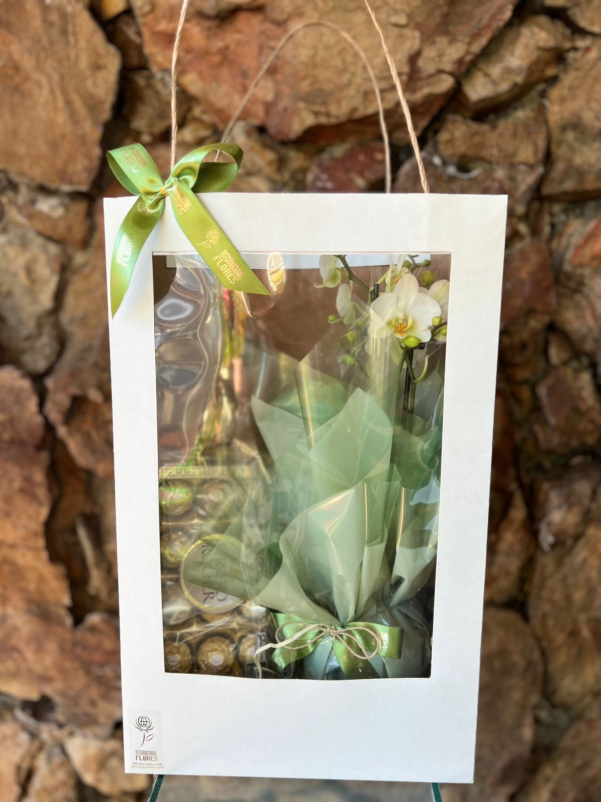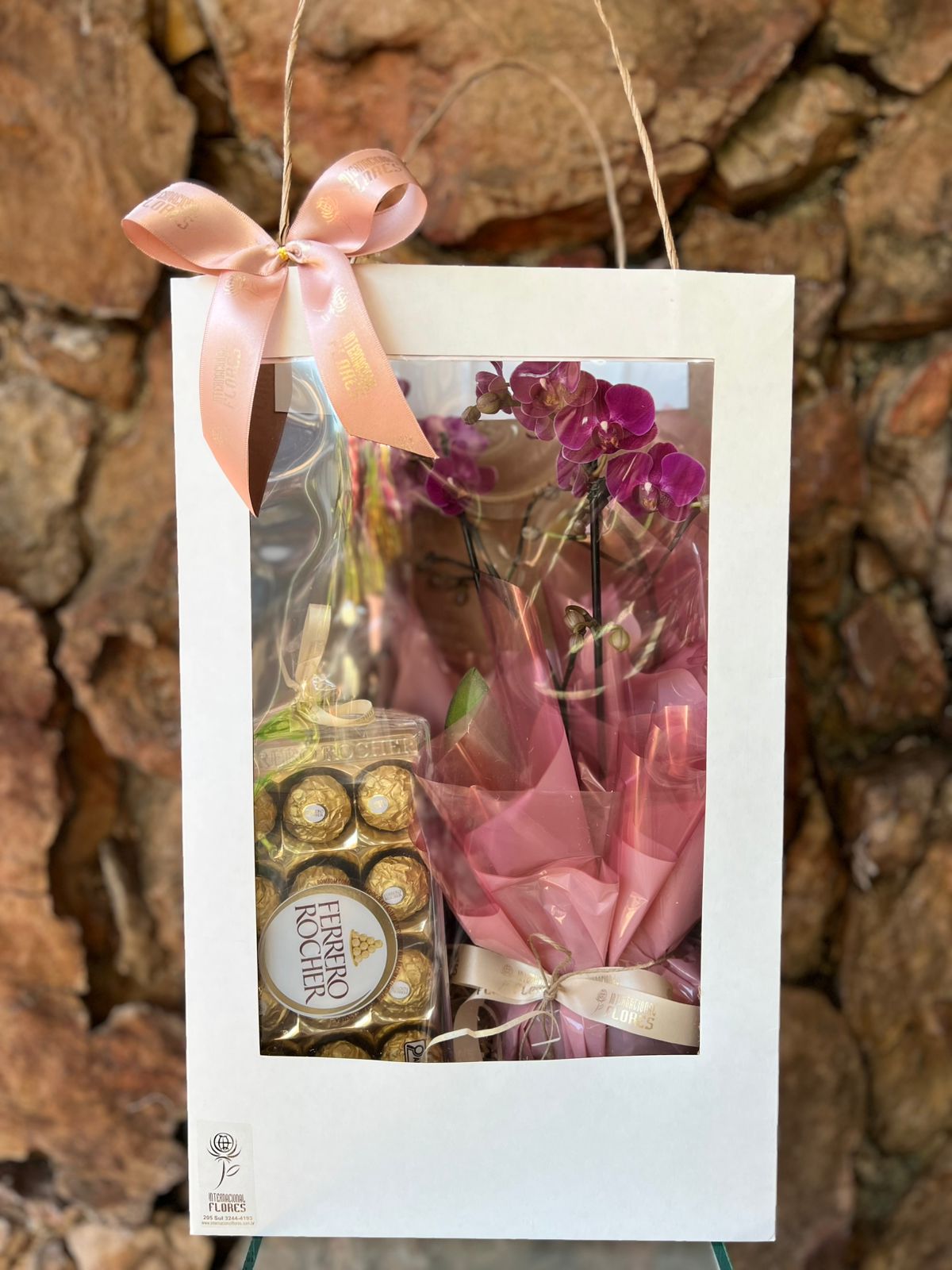 Orquídea Phaleanopsis Mini na Sacola Visor com Chocolate