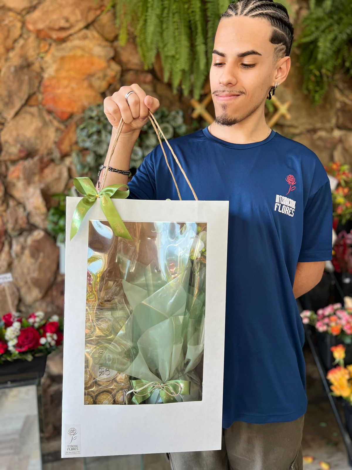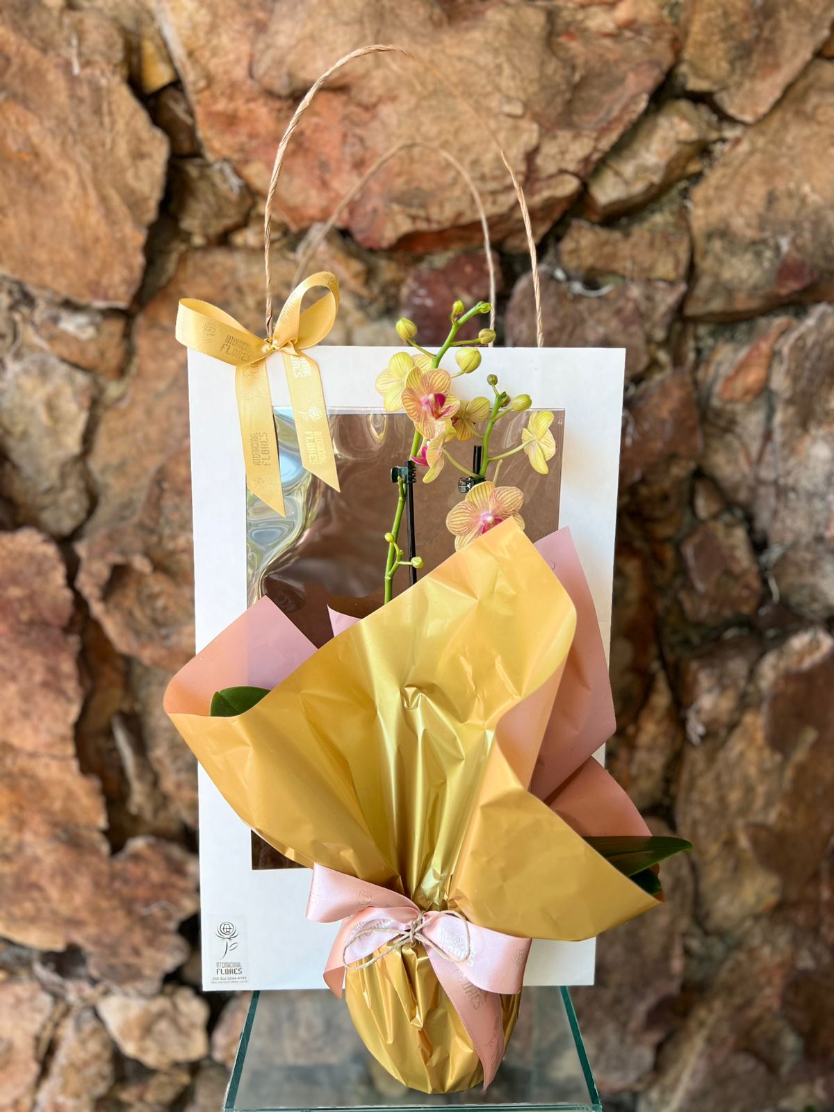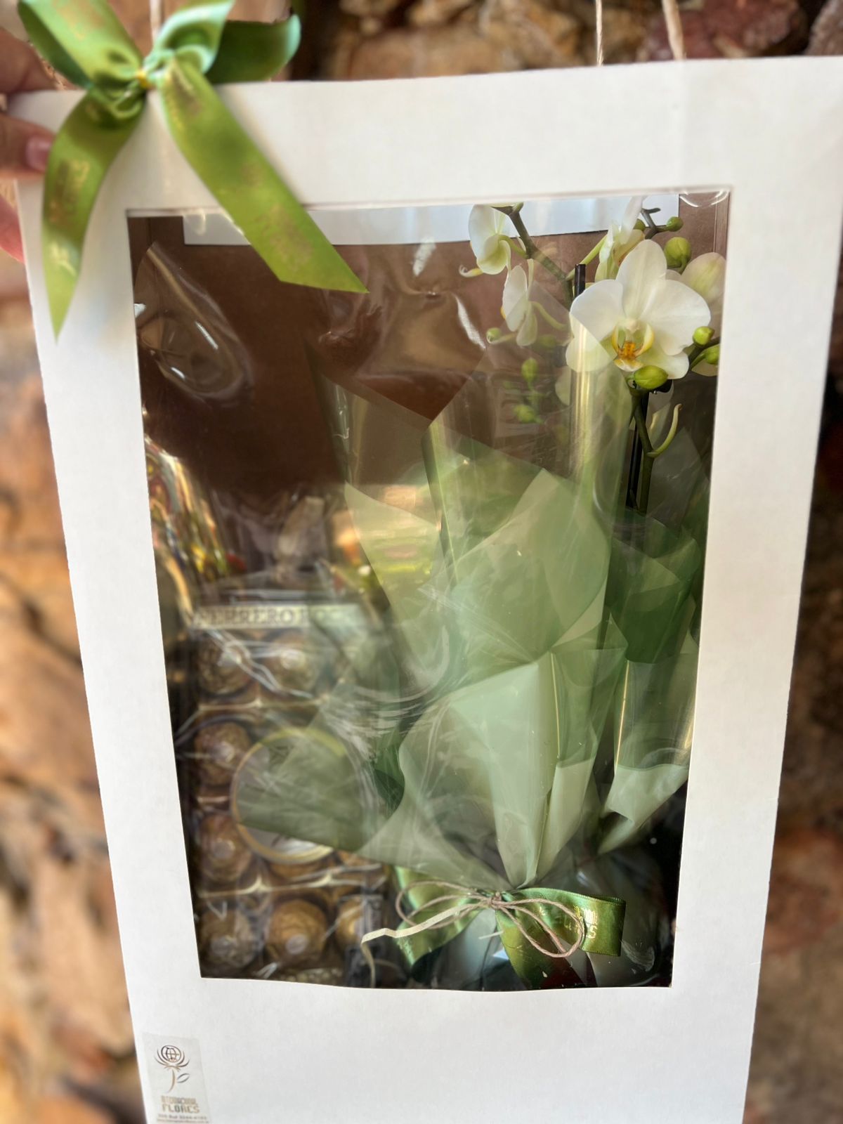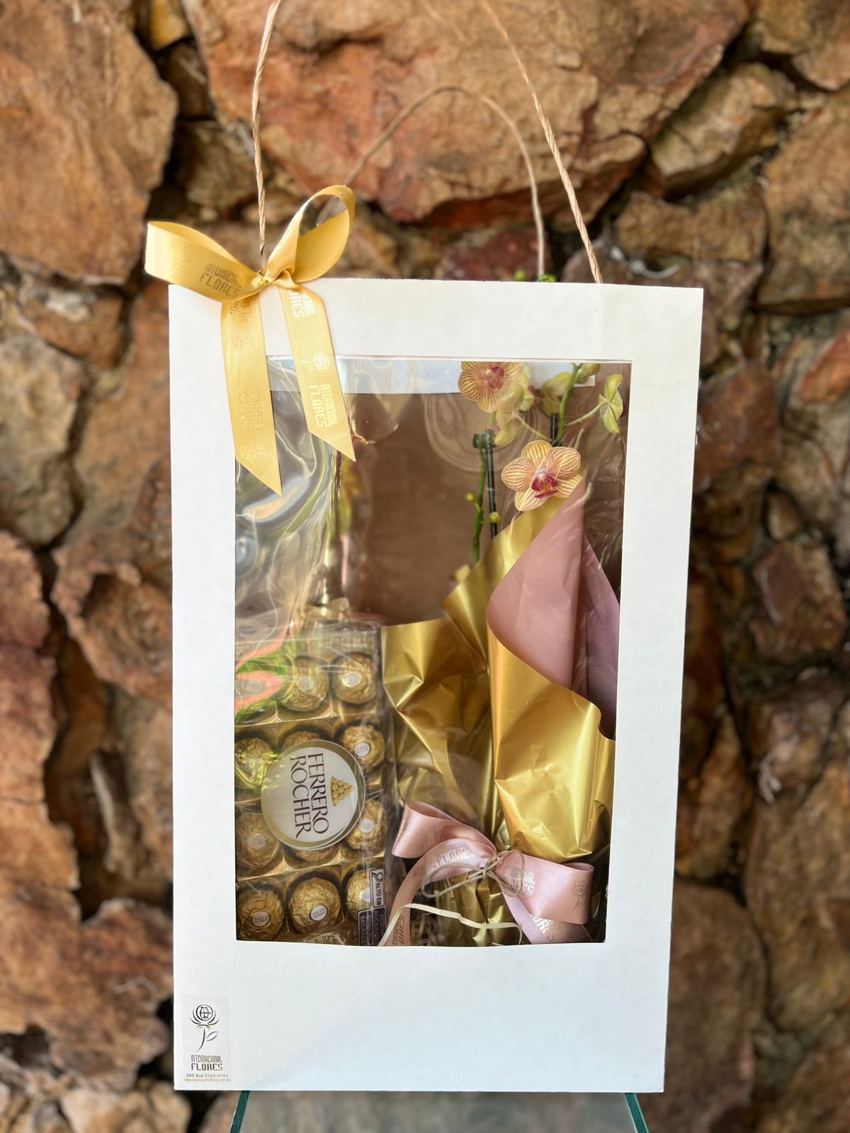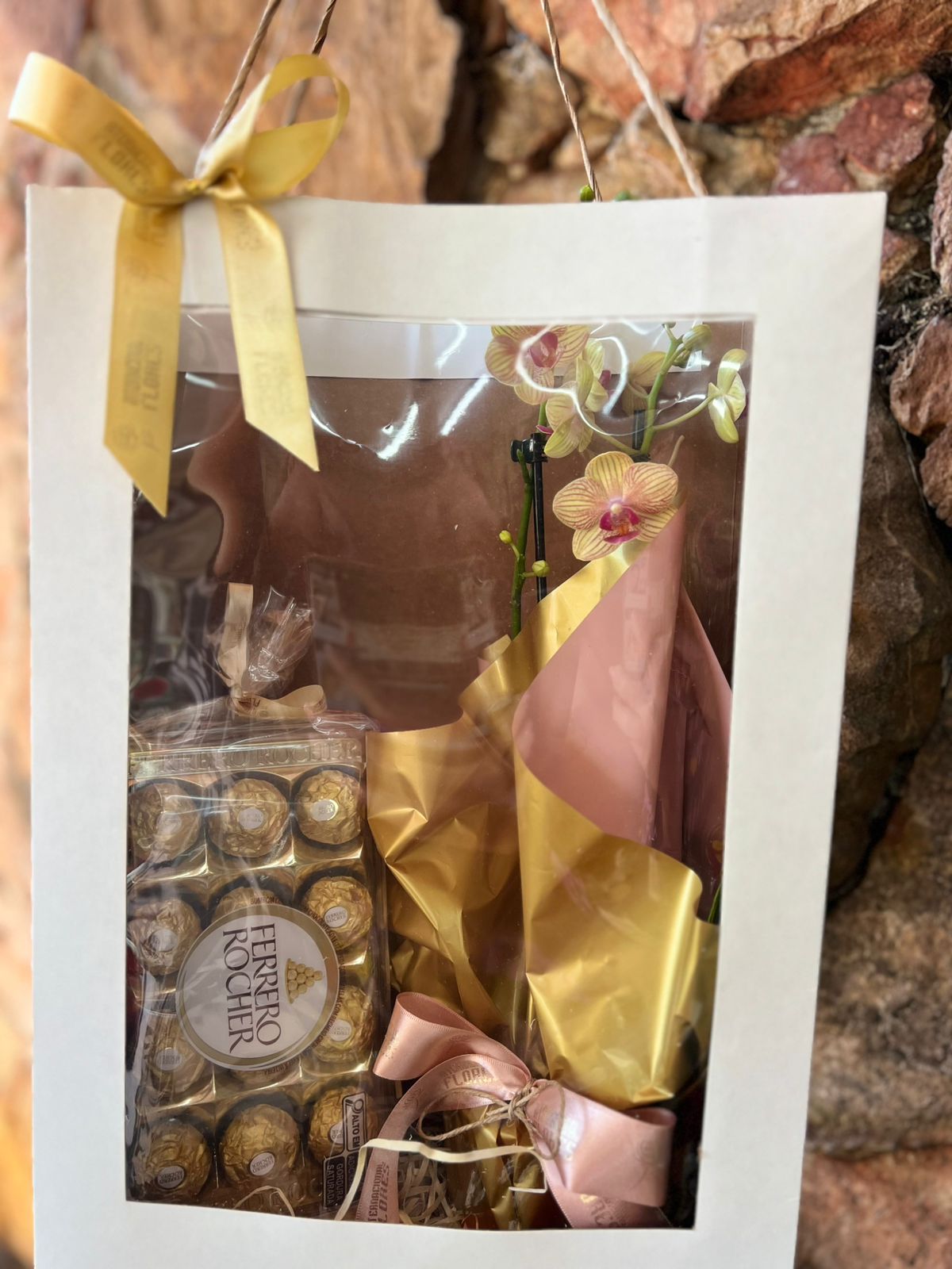 Orquídea Phaleanopsis Mini na Sacola Visor com Chocolate