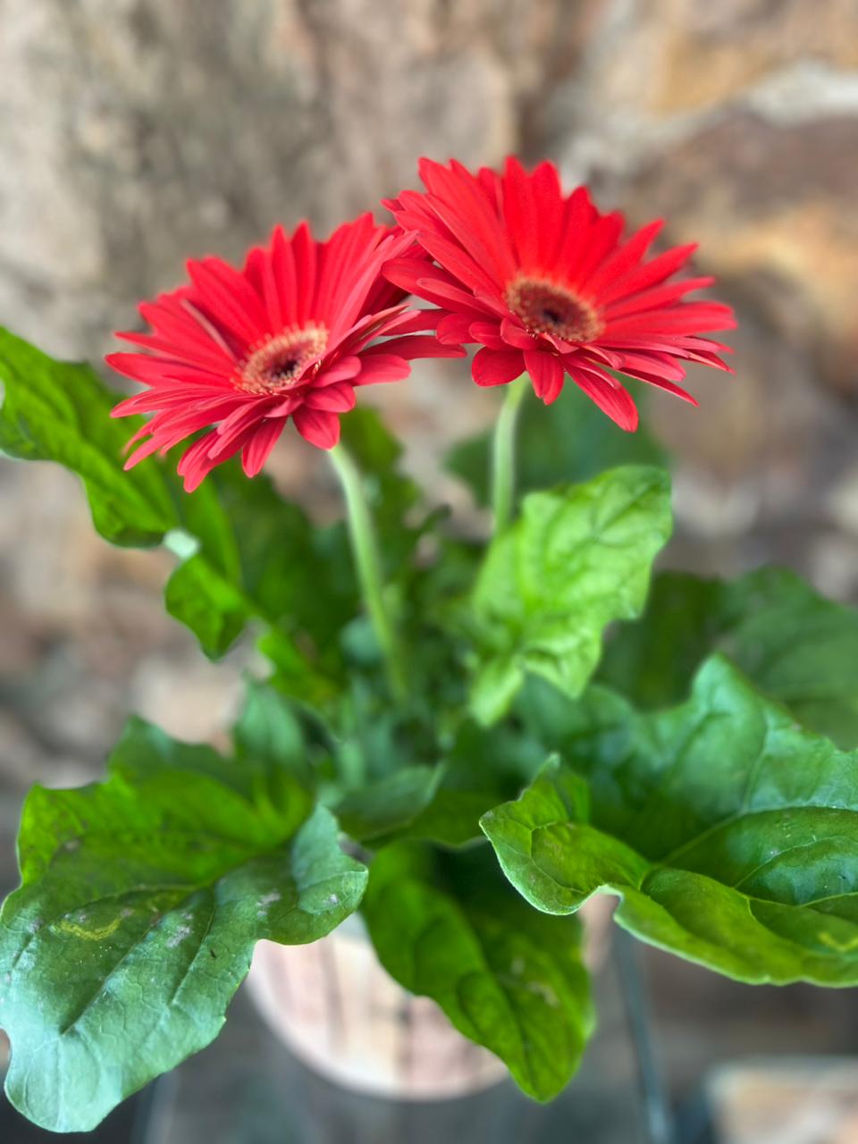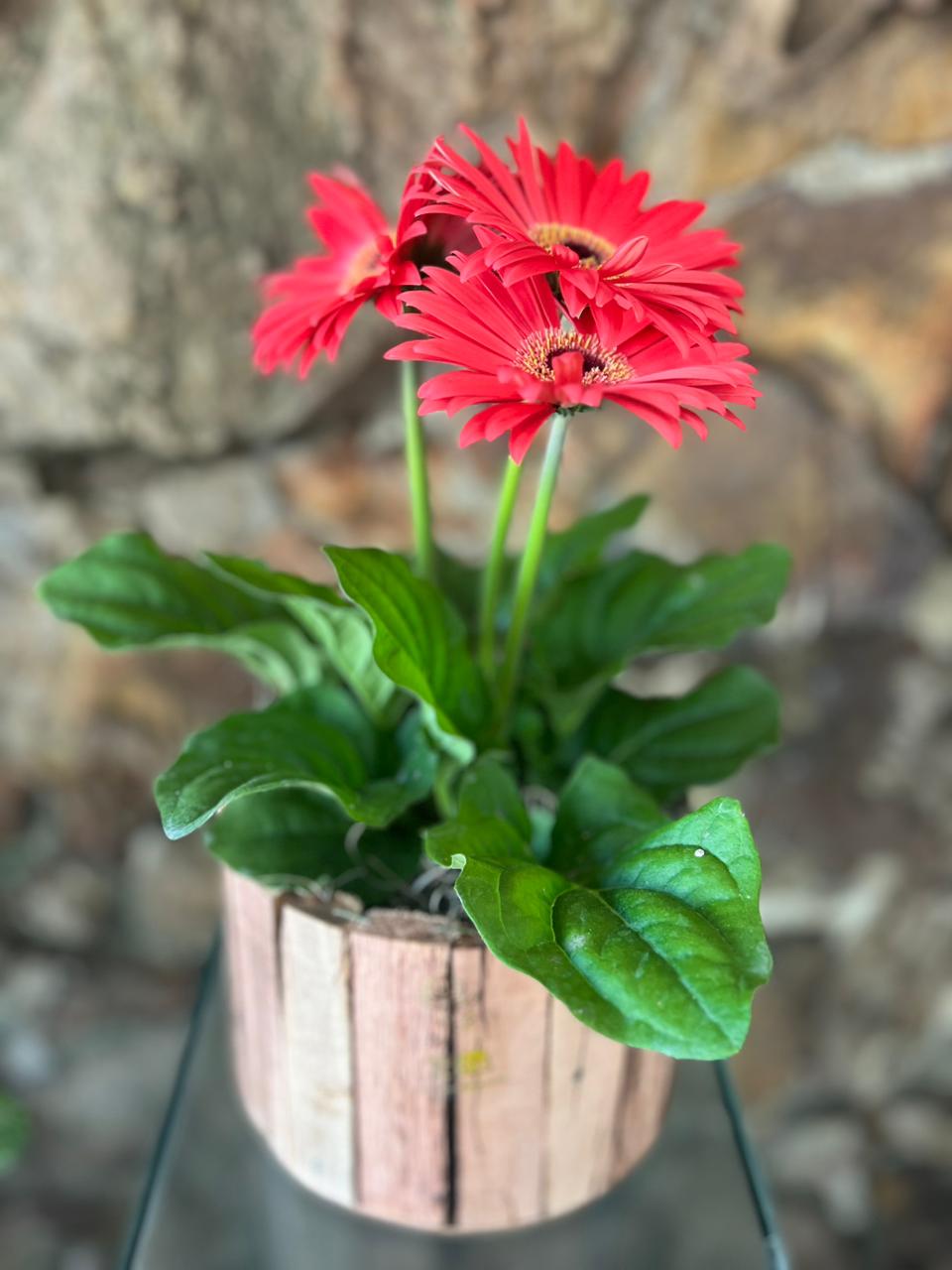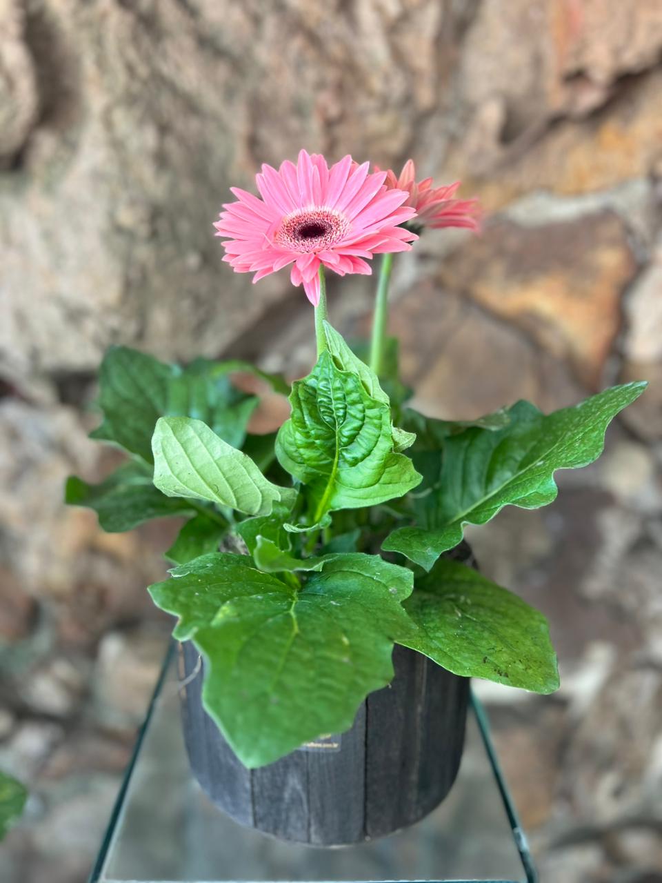 Vaso plantado de Gérbera (Cores disponíveis a serem consultadas) no Pote 15. Flor silvestre que se adapta muito bem ao clima temperado e a diversos tipos de solos.