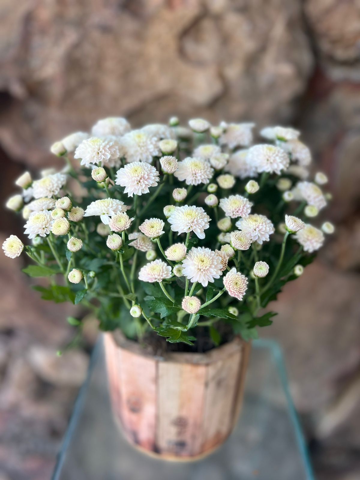 Vaso delicado e alegre da Mini Bola Belga pote 11, ela é uma das muitas espécies de crisântemos, que podem ser encontradas em várias cores (branca, amarela, lilás, grená, etc.)
